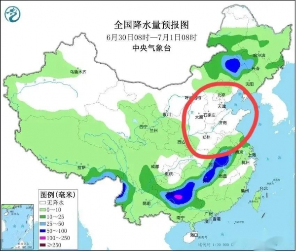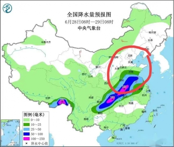 据了解,预计28号白天至夜间,受西北太平洋副热带高压南下和副高脊层低涡系统影响,西北地区东部、黄淮、华北北部等地有大到暴雨,局地大暴雨,尤其是山东、河南、河北等地将有大到暴雨,对缓解当下旱情非常有利。