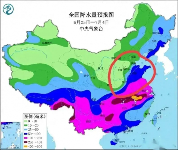 据悉,进入7月份以后黄淮海平原周边将迎来持续性降雨季节,并且今年黄淮海平原周边的降水量可能会比较多,并且会出现一些集中性降水过程。
