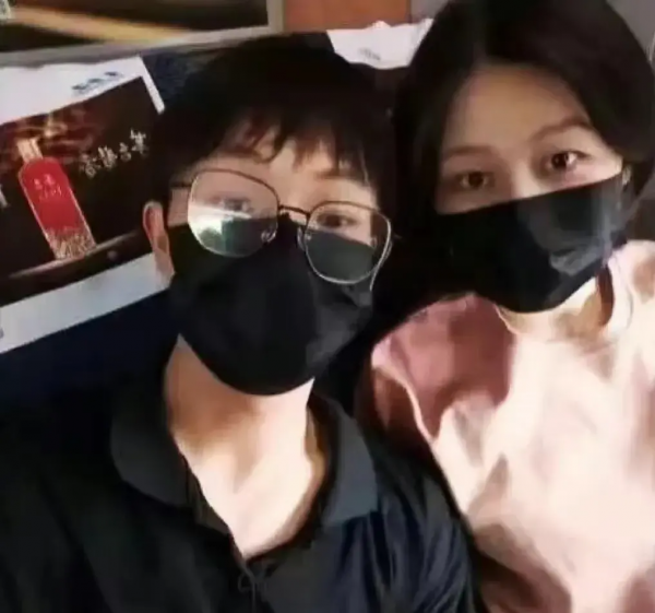 第二张照片,两人在高铁上戴着口罩的合拍照。