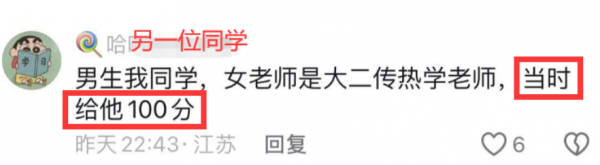 但两个同学的说法不一,一个是猜测,一个很确凿地说女教授给男生考研加了100分。