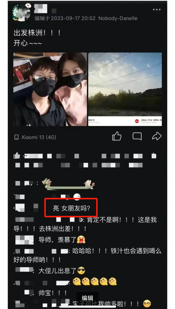 难怪认识男学生的一个人在他社交账号下问:是女朋友吗?