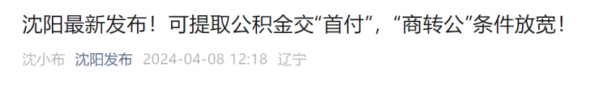 同日,沈阳也进一步优化住房公积金提取和贷款政策,2024年4月1日至2024年9月30日期间,购买自住住房的职工本人及其配偶可申请提取住房公积金支付购房首付款。同时,放宽"商转公"贷款申请条件,将"商贷已偿还5年(含)以上"调整为"商贷已偿还3年(含)以上"。
