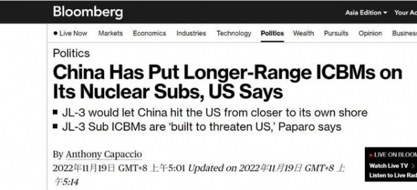 最近,美国故技重施渲染中国"核武器扩张",加紧制造"中国核威胁论"。美国《彭博社》报道称,美军太平洋舰队司令帕帕罗表示,中国列装射程更远的新型"巨浪3"型弹道导弹,最重要是部署在6艘094型和094A型战略导弹核潜艇(晋级战略导弹核潜艇),这也是美国首次公布中国列装"巨浪3"型弹道导弹。