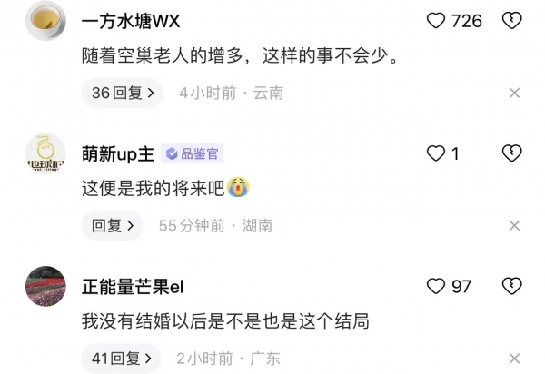 所以说这就是现在空巢老人的无奈,没有子女,也没有人帮忙。再加上现在住的又是楼房,不像之前邻里邻居还能互相串门,互相帮助。这真的有的时候发生点什么,还是没有人能帮一下。这也难怪父母那么希望我们结婚,希望我们能有个孩子,到时候孩子能帮忙养老送终。