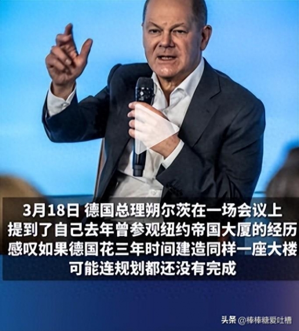 据报道,朔尔茨总理在某次会议上表示:"中国造一座城比德国审批一座房子的速度还快。"他指出,德国在建设项目的审批过程中通常需要经历漫长的流程和繁琐的程序,而相较之下,中国的建设速度明显更快。这一言论立即引起了社会各界的热议。