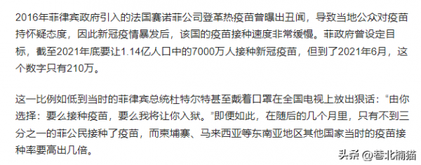 在全球都在接种新冠疫苗的时候,菲律宾则对疫苗非常的抵触,哪怕菲律宾总统对民众放狠话,也无法阻止民众的恐慌。