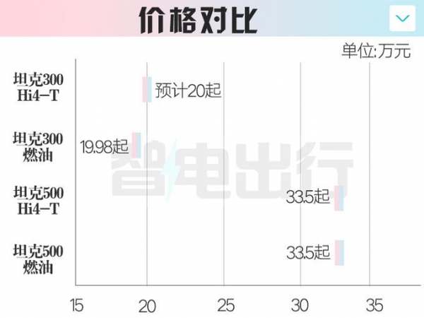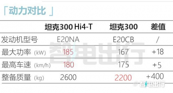 新车搭载与坦克500 Hi4-T相同的2.0T发动机和三元锂电池组,纯电续航105km,燃料消耗量为2.29L/100km。考虑到坦克500 Hi4-T价格与其燃油版起售价相同,再结合坦克300燃油版(19.98万起)售价,预计坦克300 Hi4-T起售价将在20万元左右。