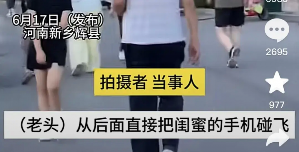 再看这一位,是一个穿粉色裙子的女生,旁边拉着她的可能是她的男朋友,好在男生余光看到了老头,眼疾手快把女生往自己拉了一把,