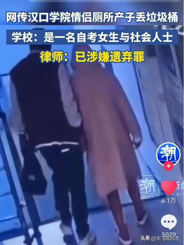 3月22日,武汉汉口学院一对大学生情侣在厕所产子并将婴儿丢弃在垃圾桶的事件引发了广泛关注和热议