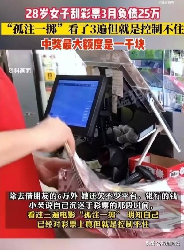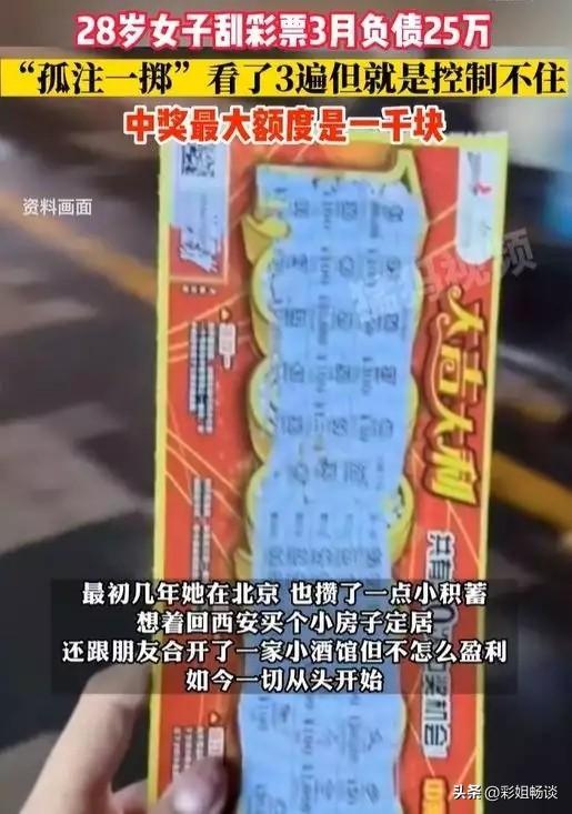 近日,一则关于一位28岁女生刮彩票3月负债25万的新闻引起了广泛关注。这个故事一时间成为舆论热点,引发了人们对彩票沉迷问题的深思和讨论。在经历了痛苦的负债之后,这位女生终于从中找到了自我救赎之路,并坚定地表示不会再沉迷于任何东西。本文将结合具体案例和数据,探讨背后隐藏的问题以及如何避免类似的困境。