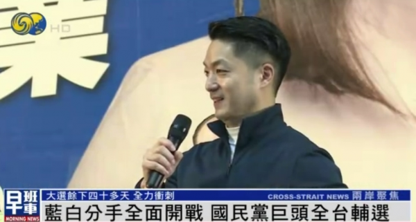 蓝白阵营全面"开战"后,国民党马上启动攻势。一个周末,巨头分头出动辅选拉票,名列不分区"立委"名单第一名的高雄前巿长韩国瑜跑到澎湖为"立委"参选人站台,对民进党火力全开。