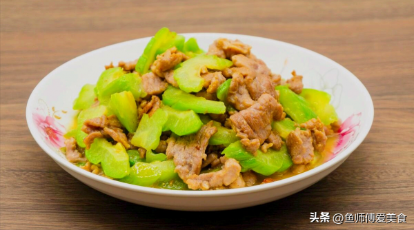 3.放入苦瓜,爆炒2分钟,加少许食盐、味精,炒匀即可出锅。