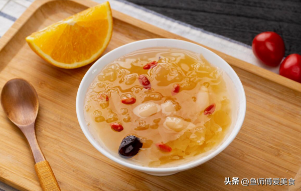 1.一朵干银耳,放入清水中泡发2小时,去掉根蒂,剪成小朵,冲洗干净。