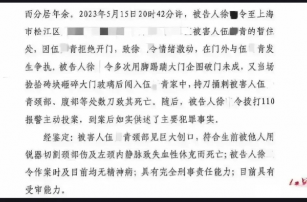 5月15日,在上海市松江区九亭镇一处民宅内,一名母亲在4岁儿子面前被丈夫连捅数刀毙命,仅一墙之隔的岳父母无力相救,幼小的生命亲眼目睹了母亲在血泊中的惨死。