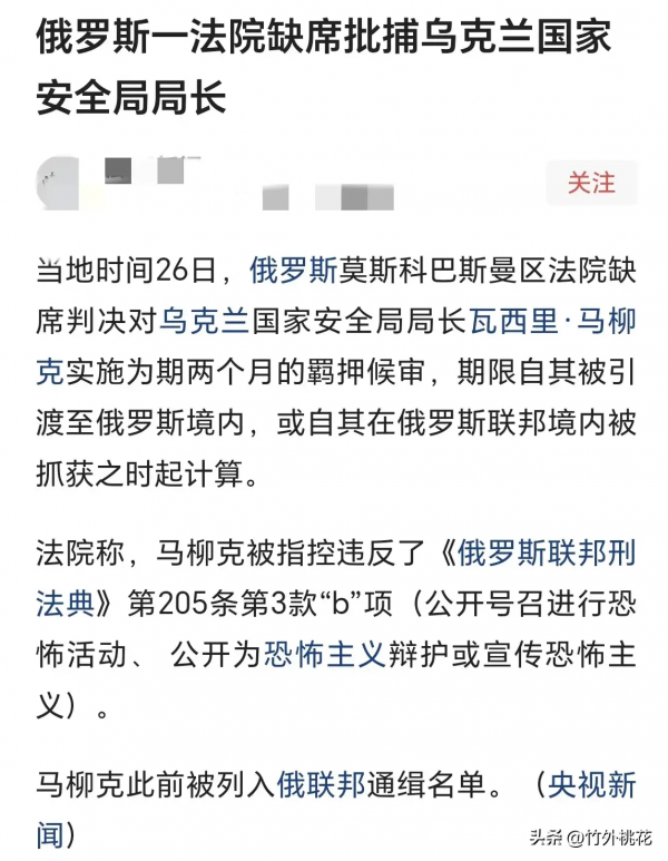 目前:俄罗斯国内还在调查,乌克兰究竟多大程度参与了对莫斯科的恐怖袭击。3月26日已经发出了对乌克兰安全局长瓦西里.马柳克的逮捕令,看来莫斯科应该是掌握了部分证据。