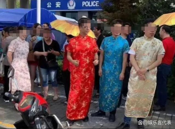 为了能够让孩子们考出好的分数,家长们纷纷穿上了旗袍,寓意着孩子可以"旗开得胜",甚至一些男家长也是不顾及形象,不甘落后的也是穿上了旗袍。有些家长更是离谱的让全家人穿上紫色内陆,寓意"紫腚能行"。
