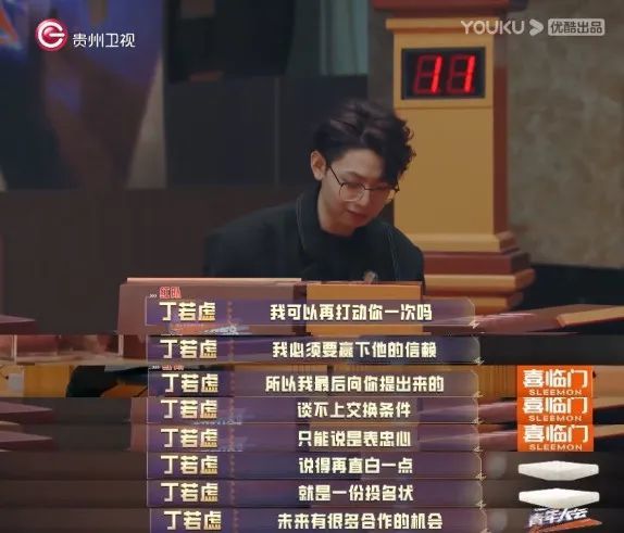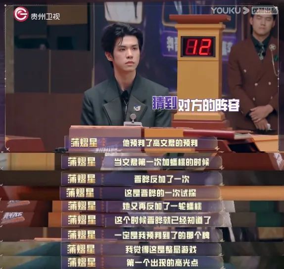 这位律政届"何以琛"还打下了节目的第一个高光点,通过追加蟠桃的举动去猜测对方的阵容,在没有输掉蟠桃的情况下还得知了对方的阵容,心理素质很强。