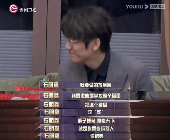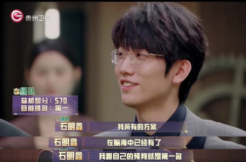 石明鑫,在机智游戏中从听到游戏规则就想好了赢的策略,最后真的带着团队赢了。