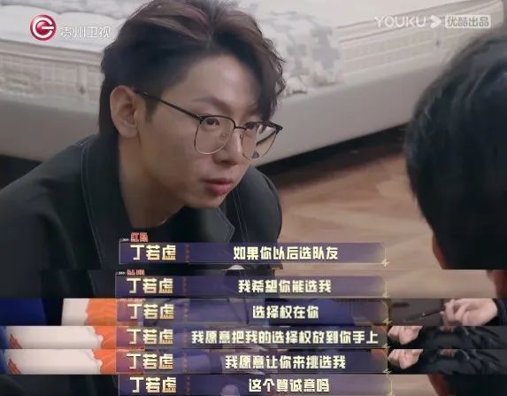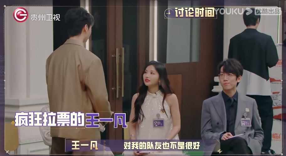 王一凡在这环节是有点"虚伪"在身上的,明明不想被投中,但理由是自己去PK对队友不好,这借口找得有点看不起队友了......