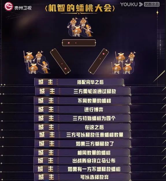 游戏越快结束,石明鑫他们后期弃的蟠桃就越少,所以在其他队寻求自己帮助时,他唯一的条件就是要求对方下一局出12武力值,快速消耗完能保住最多的蟠桃数。