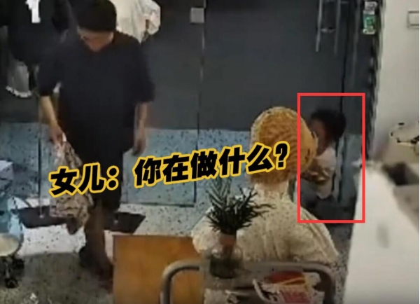 可这位男子在看到是女儿后,直接把手中的衣服甩向女儿,紧接着用臭脚一踢,把女儿直接踹飞。