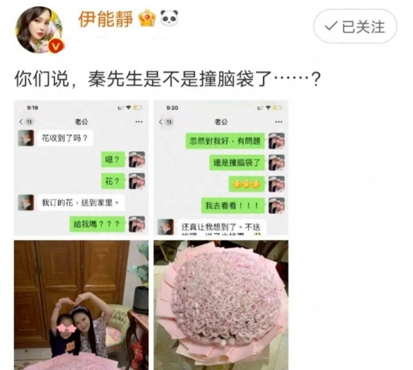 最爱在社交平台发表小作文的伊能静也秀得一手好恩爱,看似嗔怪实则难掩惊喜地晒出了老公秦昊预订的一大捧粉红色玫瑰花束,想当小公主的需求终于被贴心满足了。