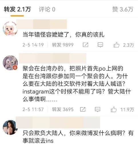 莫名其妙的网友越想越气愤:未打码照明明是在台湾参加聚会的人流出的,林心如却跑到大陆使用的微博上喊话"侵犯隐私",发飙只面向大陆网友却不抓源头,是怎么一回事?