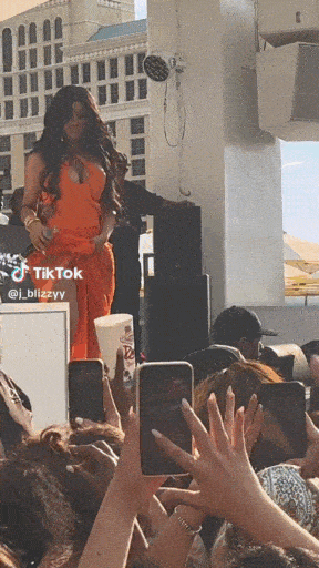当天卡姐还跑到了延伸舞台,近距离和台下的粉丝们互动。不仅如此她还从下体拿出一根卫生棉条,并用力扭胯表演。