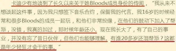 对于被曝出卡姐在16岁加入黑帮组织,她也大方承认确实属实。但她表示是因为当时年少无知,被朋友鼓动而参加,成大后有了自己的事业后便不再混帮派。另外虽然她已经成了名人,但是并没有忘了那些帮派的朋友,至今依旧跟他们保持联系。