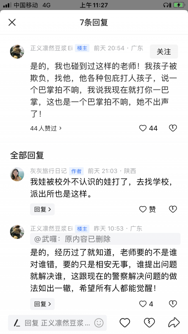 也有网友遇到过类似的经历,老师的做法居然跟宁德这个老师如出一辙,各种包庇,企图糊弄过去!