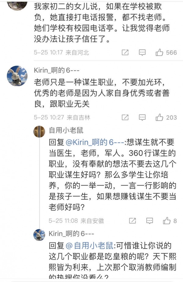 人神共愤!天理不容!枉为人师表!怪不得有网友说:老师只是一种谋生职业,不要加光环,优秀的老师是因为人家自身优秀或者善良,跟职业无关。