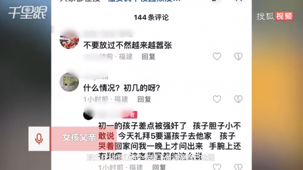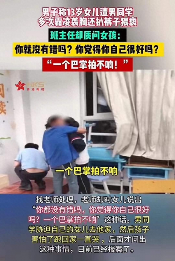 福建宁德,一个父亲家长爆料:自家13岁的女儿多次遭受同班男同学的霸凌和猥亵,袭胸扒裤子体液弄得墙上都是,女孩求助老师,老师竟口出狂言:"你都没有错吗?一个巴掌拍不响!"