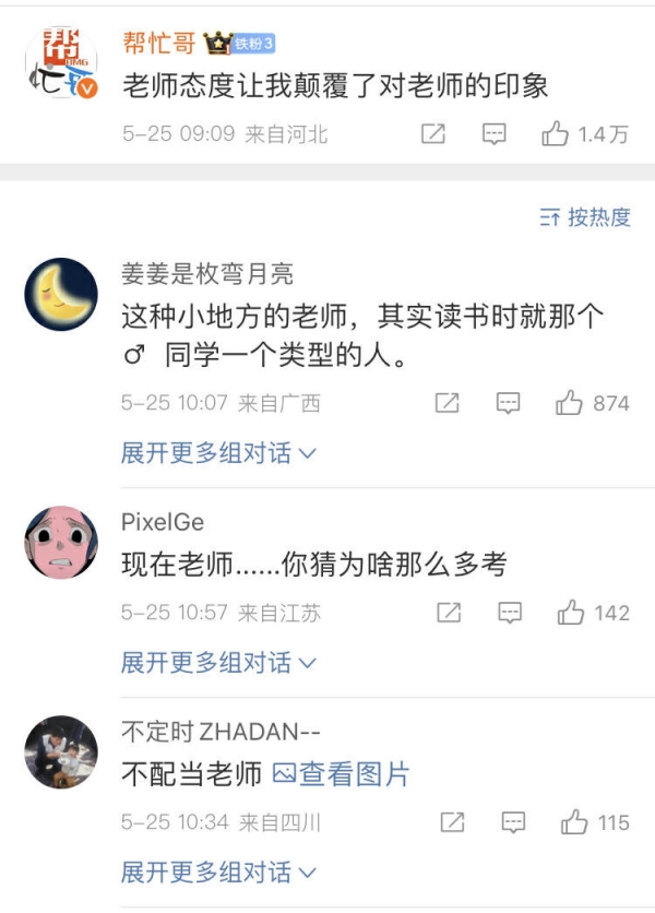 这个老师的态度也让我颠覆了对老师的印象,不配当老师。
