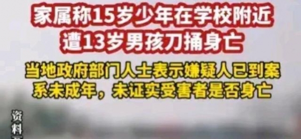 15岁少年在一中学门口被13岁男孩刀捅身亡,当地回应