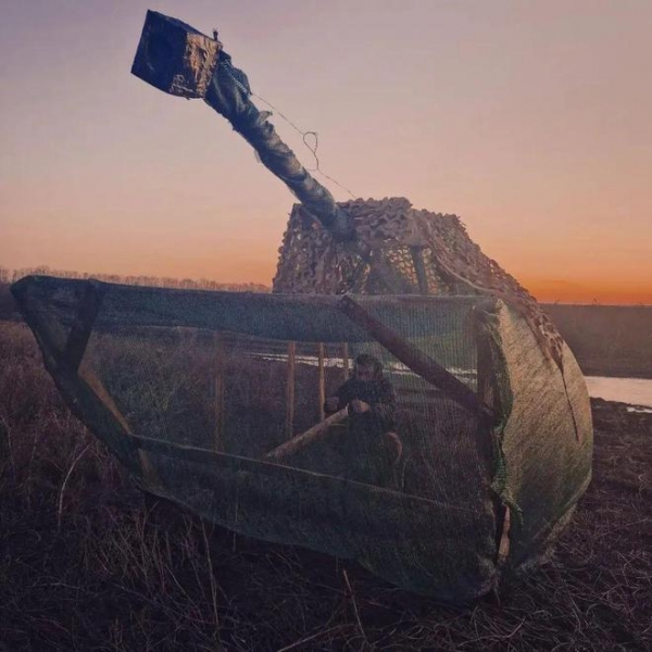 乌军设置的木制自行火炮假目标