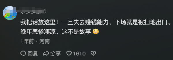 "我把话放这里!一旦失去赚钱能力,下场就是被扫地出门,晚年悲惨凄凉,这不是故事"