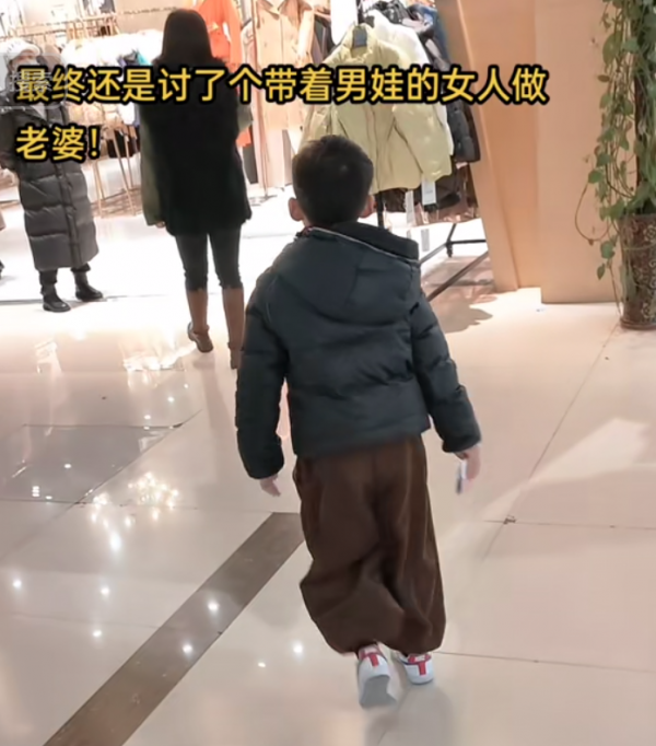 所以最终他找了一个二婚妻子,并且还带了一个看起来有七八岁的男孩。