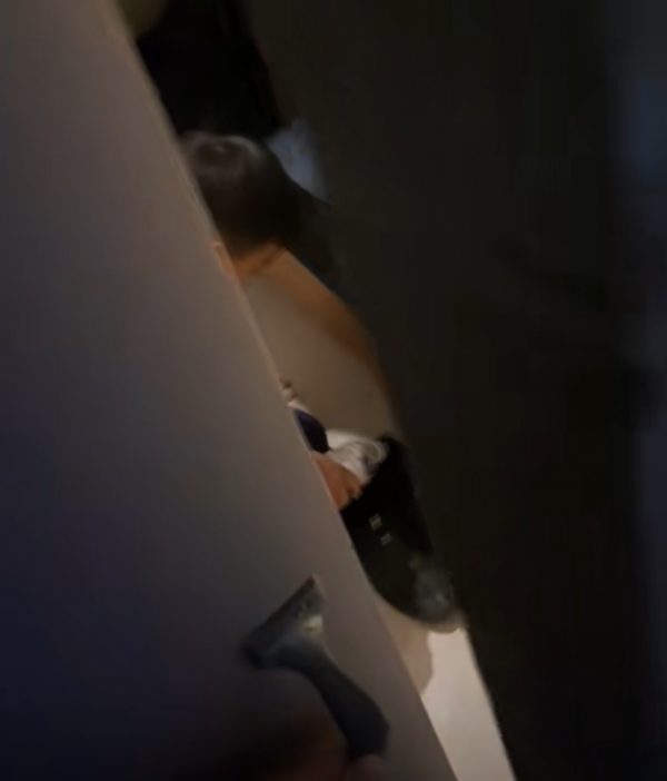 蓝哥假装啥也没看见,偷偷又把门关上了,后来他把这个生活片段发到了网上。