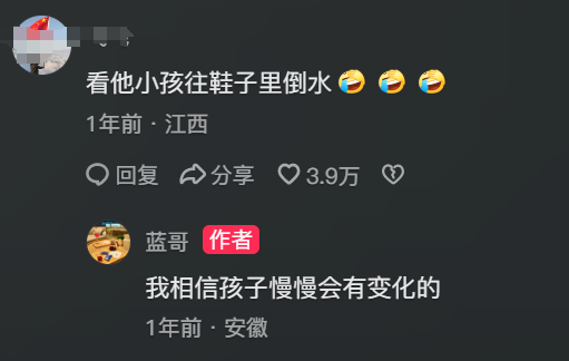 不过蓝哥本人还是比较乐观,在评论区回复道:"我相信孩子慢慢会有变化的"