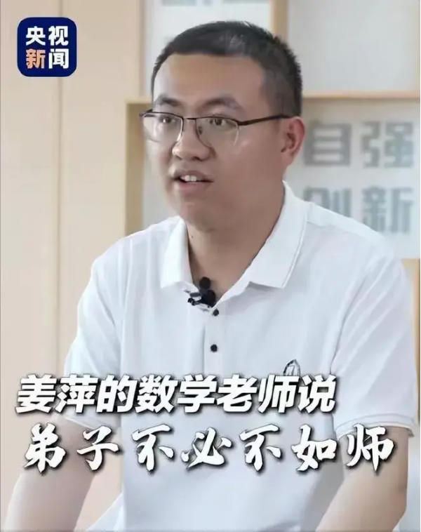 姜萍初三的数学老师最近接受了采访,根据他的描述,姜萍初三时的数学成绩属于偏上游,并不是班上最好的,但她对数学很有兴趣。