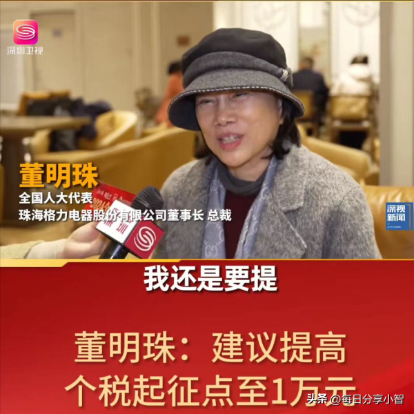 3、全国人大代表董明珠:建议提高个人起征税点至1万元
