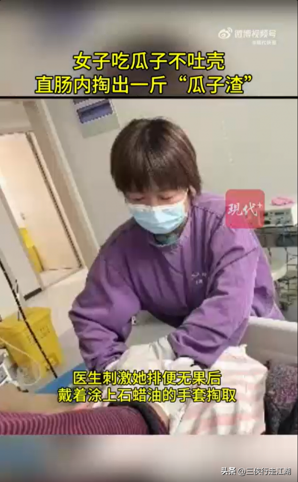 吃瓜子不吐壳,医生用手从女子直肠掏出1斤瓜子渣