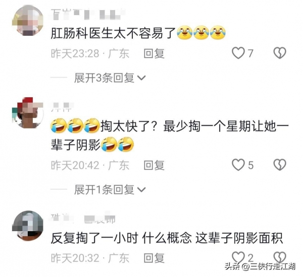 这事儿一出,网上炸开了锅。大家纷纷表示,这是个狠人!还有人调侃到,掏的太快,最少要掏上一个星期。也有人对张女士的遭遇表示同情,同时提醒自己和身边的人要注意饮食健康,这叫"吃一堑长一智"。