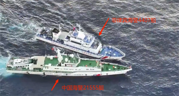 但是,菲方4407号海警船竟然不讲武德,在中国海警执法时,故意加速撞向中国海警船!