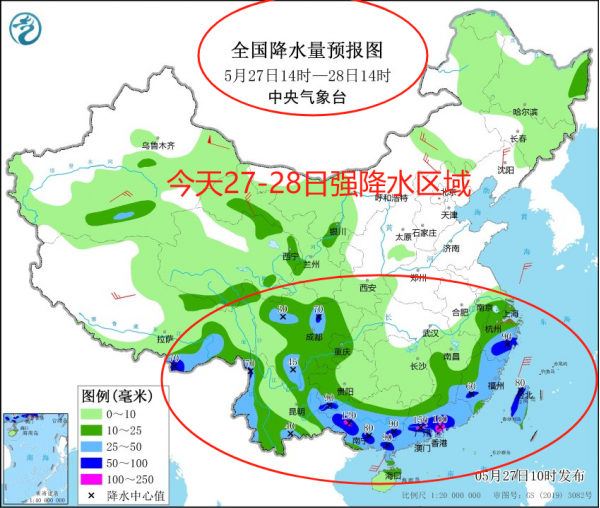 这不,今天(27日)开始,广西中部、广东大部、江西中东部、福建大部、浙江南部、广东局地等地就要遭受大到暴雨的袭击,局部地区更是有大暴雨来袭!短时狂风暴雨、雷电交加,可谓是一个"霸气外露"的天气啊。看来很多小伙伴们的周末出行计划又要泡汤了。