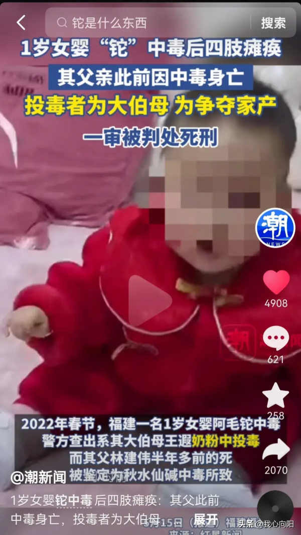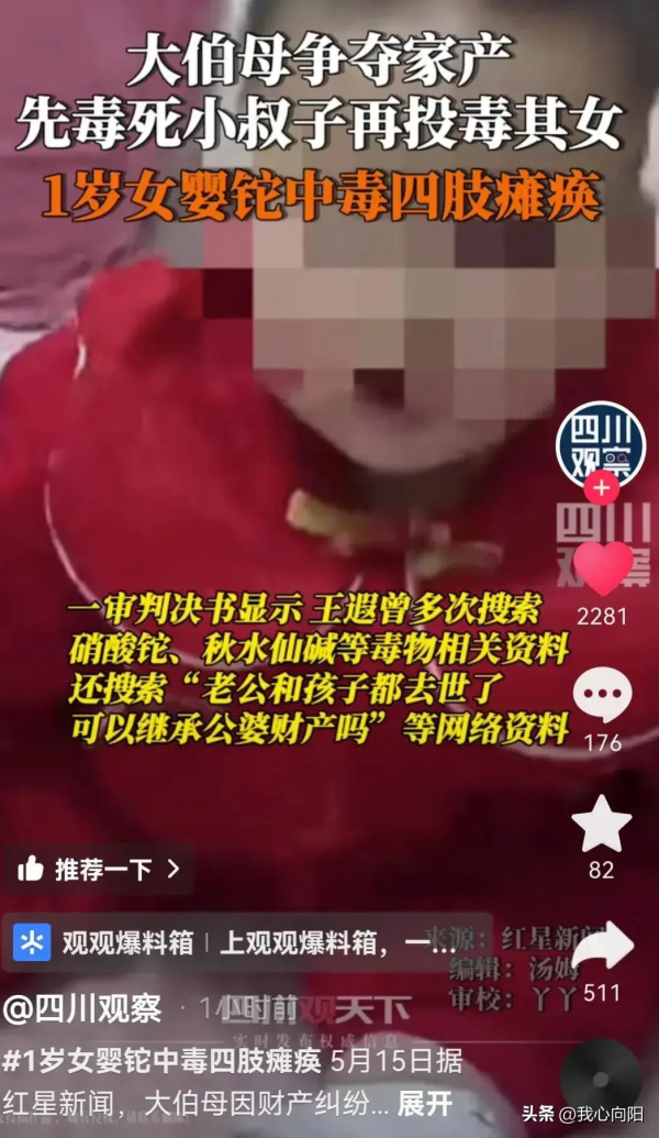 1岁女婴铊中毒 大伯母投毒动机披露:为了家产