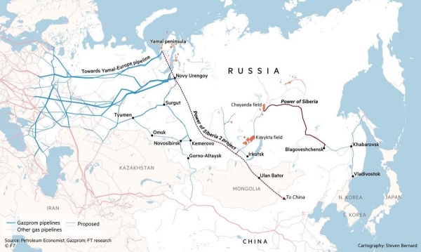 再说国际局势的变化。在中蒙陆军展开连续之际,俄总统普京率队访华,与中国就围绕经过蒙古的中蒙俄天然气管道,也就是"西伯利亚力量2号"管道项目,展开了新一轮的沟通交流。