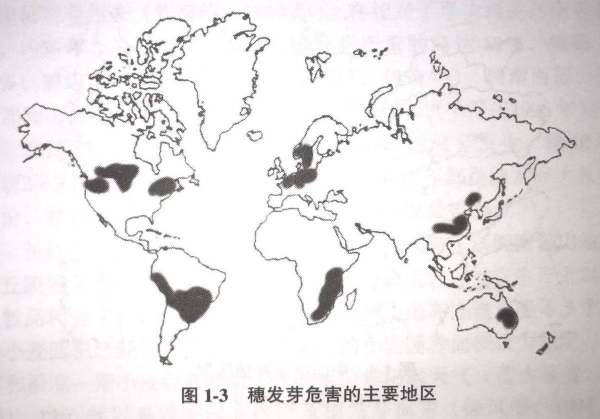 穗发芽危害的主要地区(《小麦穗发芽研究》 肖世和)