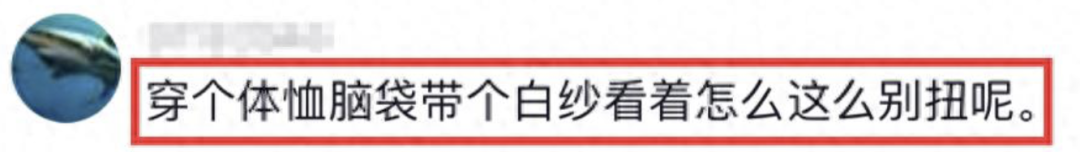 头上却戴着一顶新娘的头纱。