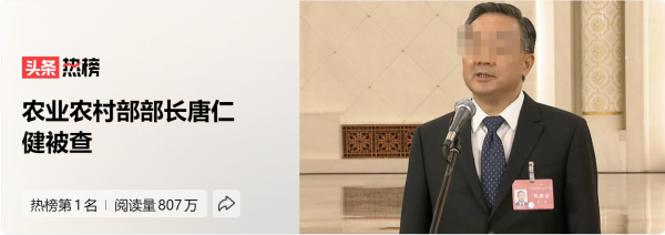 唐仁健被查事件将对农业农村部以及整个政府体系产生一定的影响。